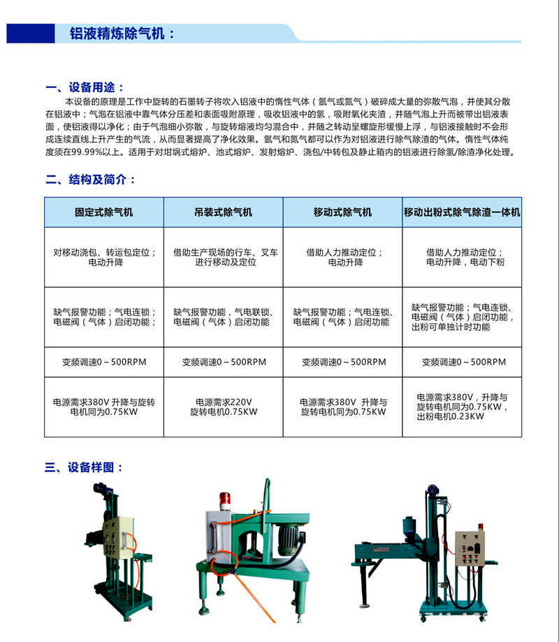 鋁液精煉除氣機分類及參考價格,詳情可咨詢 1392-687-9791